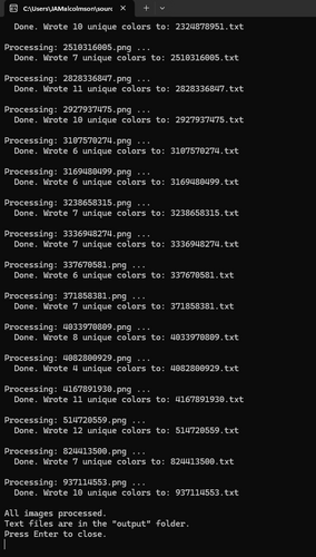 THE HEXTRACTOR is a quick-and-dirty command-line tool that scans images and lists every unique color it finds. It reads each pixel in an image and saves the colors as RRGGBBAA hex codes in a text file.